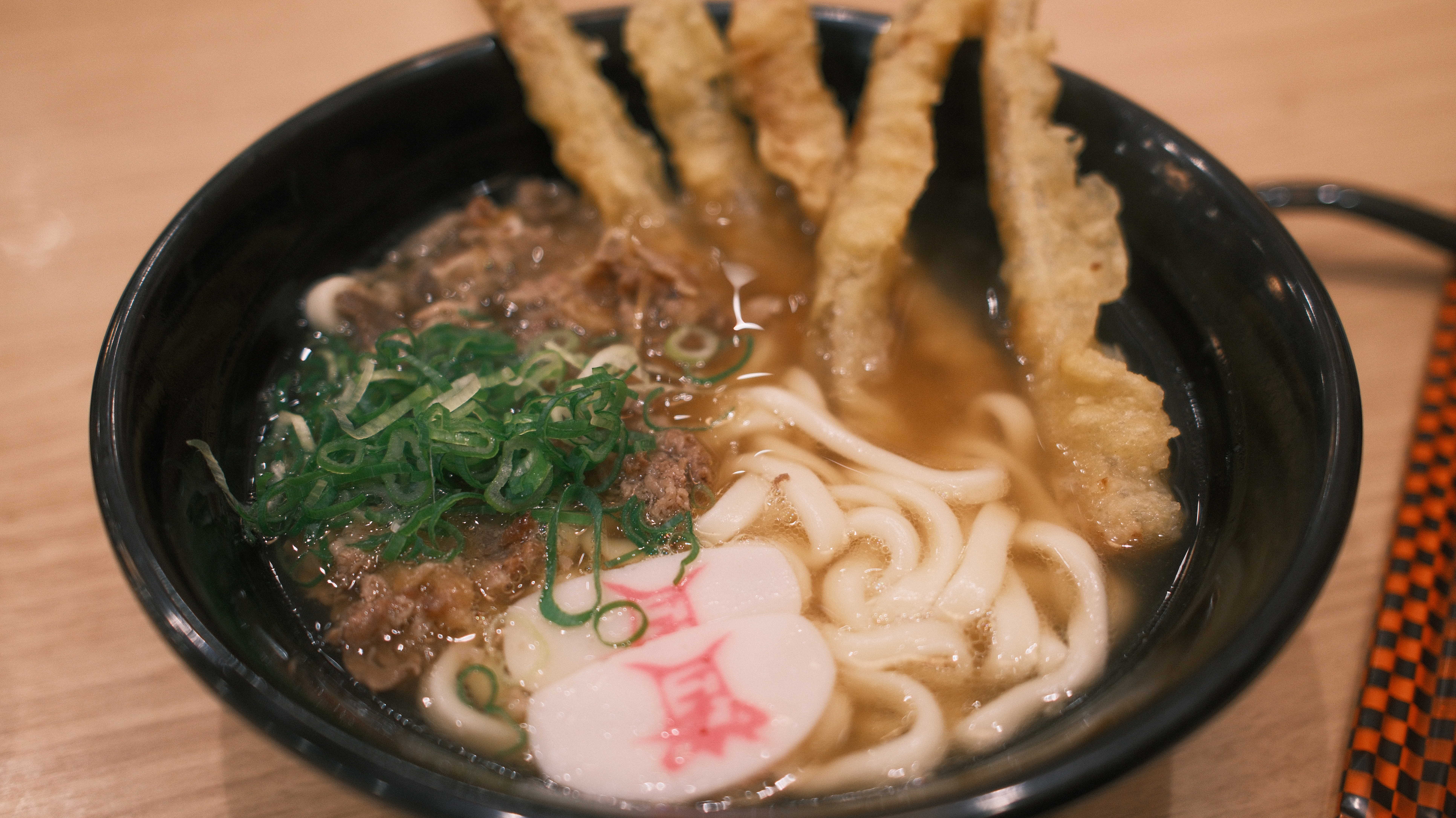 어른들은 시그니쳐 메뉴인 우엉튀김소고기 우동 입니다. 한국에서 먹는 것과는 차원이 다릅니다.
